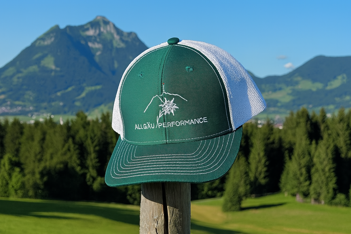 Unsere Allgäu Performance Cap vereint klassischen Streetwear-Style mit dem unverwechselbaren Gefühl der Berge. Die grüne Front mit edelweiß-gesticktem Logo trifft auf eine luftige, weiße Mesh-Rückseite – perfekt für warme Sommertage, sportliche Ausflüge oder entspannte Momente in der Natur.